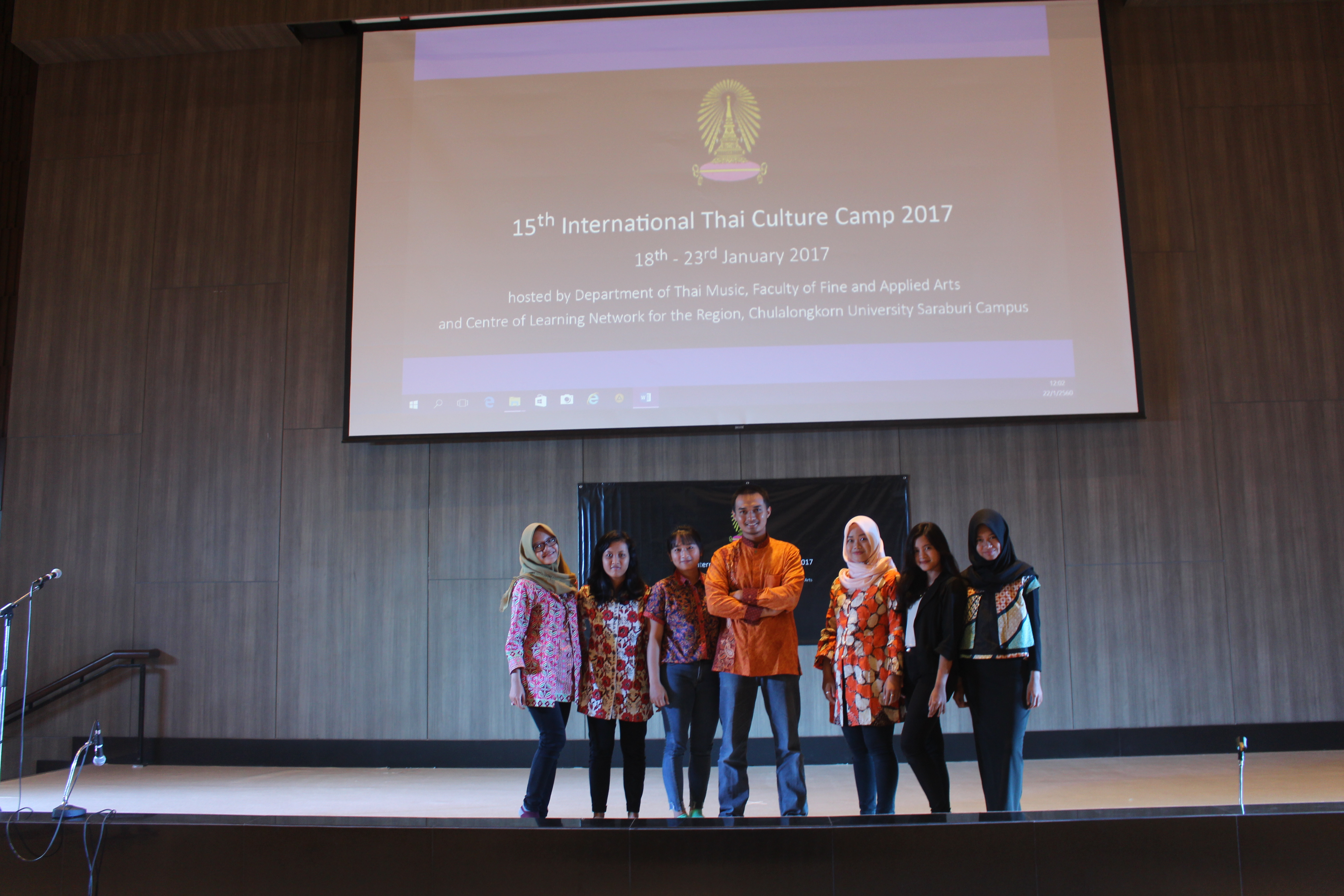 Thai Cultural Camp is an annual agenda of Chulalingkorn University which is attended by student representatives from Indonesia, Malaysia, Thailand and Taiwan. The activity took place from 18 - 23 January 2017 at the Faculty of Fine and Applied Arts Chulalongkorn University Saraburi Campus. This activity consisted of a public performance, cultural workshop, and final group presentation.
