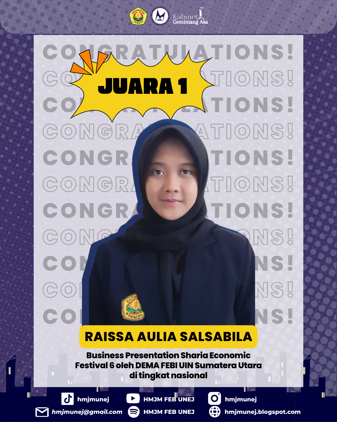 FEB UNEJ student, Raisa, Won 2nd place in the 2023 Muamalah Fair Essay Competition